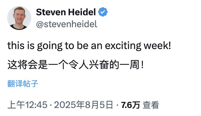 今天凌晨,OpenAI 工程师 Steven Heidel 发文称,「这将会是令人兴奋的一周」。而据此前 the Verge 以及近日消息来看,GPT-5 有望在 8 月初亮相。