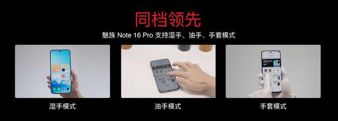 此外,魅族Note16Pro的屏幕具备极高的灵敏度,支持全场景湿手、油手、手套模式,不管是手指沾水、手指沾油,甚至是戴上手套,也能灵敏识别用户的每一次点击,全面提升触控体验。